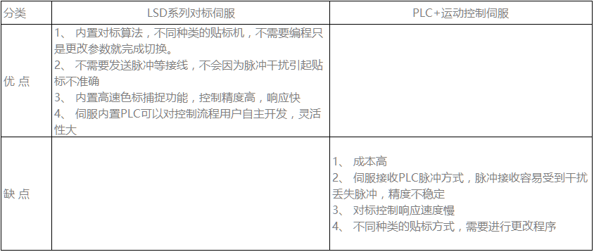 微秒LSD 伺服方案與一般PLC+運動控制伺服控制對標方案進行對比: